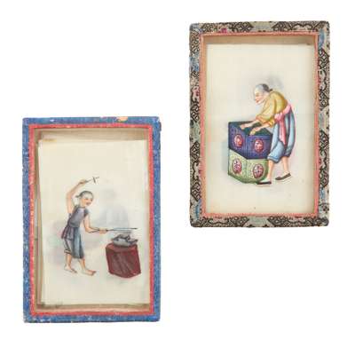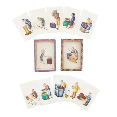 gouache on pith paper, depicting various occupations and craftsmen, with two original cloth boxes with clear cover