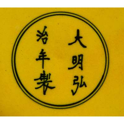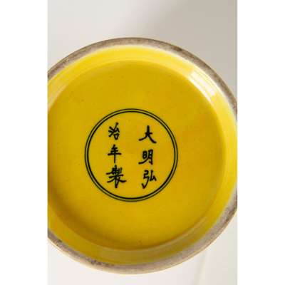 弘治款 檸檬黃釉暗刻龍紋蓋罐