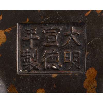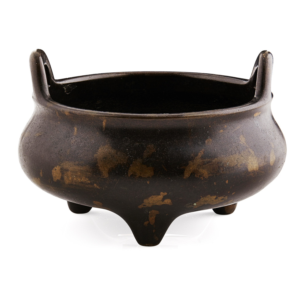 GOLD-SPLASHED BRONZE TRIPOD CENSER