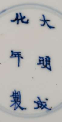 of circular form, decorated to the interior with central coiling four-clawed dragon chasing the flaming pearl within double ring, the rim with wave and prunus decoration, the reverse with some of the Eight Precious Things (Babao), one with jue mark, the others with apocryphal Chenghua mark within double ring (4)