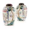 PAIR OF FAMILLE ROSE 'HUNDRED BOYS' JARS AND HARDWOOD COVERS