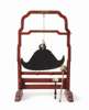 of shaped form, supported by a red lacquered frame with gilt highlights, with two associated beaters