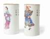 TWO CHINESE FAMILLE ROSE SMALL CYLINDER VASES
