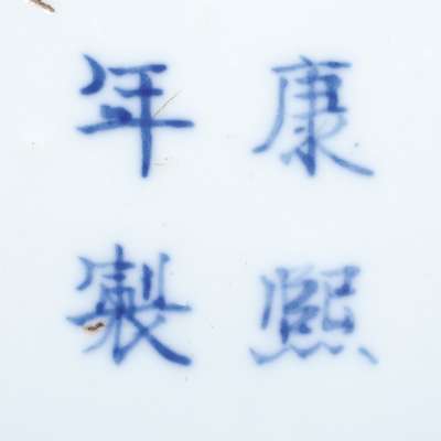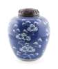 of globular form, the sides decorated with prunus blossom against a blue ground, four character underglaze mark in a double ring, with a later carved hardwood cover