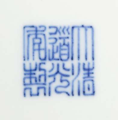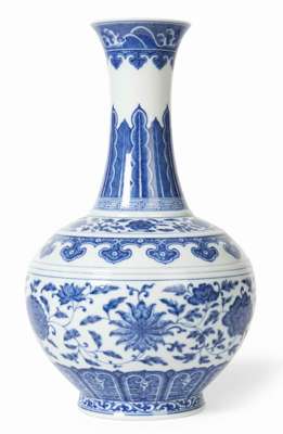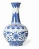 the flared neck and baluster sides painted with lotus blossom, stiif leaf and ruyi bands, Qianlong seal mark