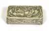 marked the to base, of rectangular outline, the hinged cover depicting scholars in a traditional landscape, the sides decorated with bamboo, raised on four ball feet