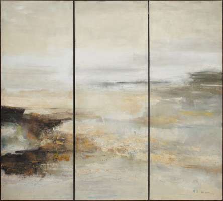 Working in a variety of media - ink and colour on paper, oil on canvas, and lacquer on wood, Bo Yun often uses diptych or triptych formats for his compositions. His free and fluid style also shows the influence of Western Abstract Expressionism while respecting the ancient heritage of Chinese ink paining, exhibiting a dramatic energy which expresses a joy in nature and the spiritual essence of the landscape.