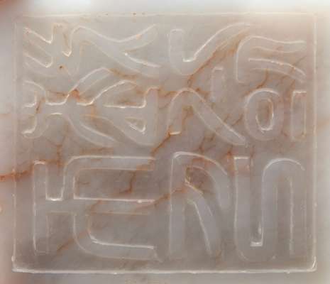 the square-section finial carved with dragons writhing among leaves, the base with four characters in seal script