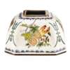 of square section with indented corners, painted on a white ground with fruiting branches of pomegranate, finger citron and peach between auspicious shou characters, the base with an apocryphal four-character reign mark