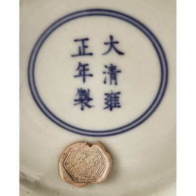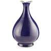 the pear-shaped body resting on a short splayed foot tapering sharply up to a waisted neck with a wide everted mouth, all covered in a deep blue glaze, stopping neatly at the white foot and mouth rims, the base with a six-character reign mark with double rings