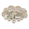 comprising a teapot and cover, a milk jug, six cups and eight saucers, two bowls, a rectangular serving tray and six dishes, painted in the typical manner with panels of figures and birds and flowers (25)