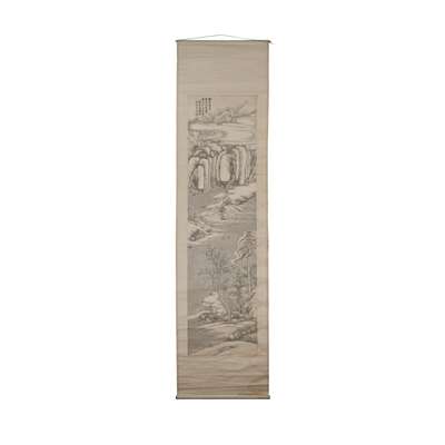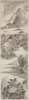 the first two hanging scrolls, ink on paper, titled, dated gengchen year, dedicated to Hua Pu, signed Su Yunpeng, with two seals of the artist, each 170x45cm (sight); the third figures in a landscape, ink and colour on paper, signed 'Jing Quan Luo Huang', with two seals of the artist, framed, 147x39cm (sight) (3)