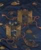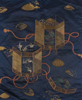 TWO MIDNIGHT BLUE GROUND EMBROIDERED SILK PANELS