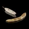 the banana naturalistically carved and inlaid around the sides with various beetles, 16cm long; together with a CARVED BONE TANTO, MEIJI PERIOD, carved in the shape of a flat bean issuing from a leafy stem with insects attached to its sides, 20cm long (2)