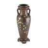 inlaid in gold, silver and shakudo with branches of cherry blossoms and foliage issuing from a pair of naturalistically modelled gnarled stems forming the handles, supported on a pierced stand