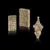 the larger case deeply carved with men and women engaged in leisurely pursuits amongst pavilions, trees and bridges, the smaller case carved with a similar design; together with a VICTORIAN IVORY CROSS (3)