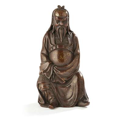 SILVER-INLAID BRONZE FIGURE OF SEATED GUANYIN