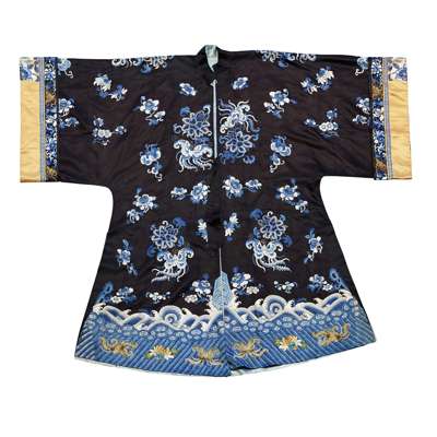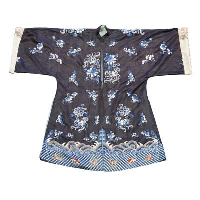 MIDNIGHT-BLUE-GROUND EMBROIDERED SILK LADY'S INFORMAL ROBE