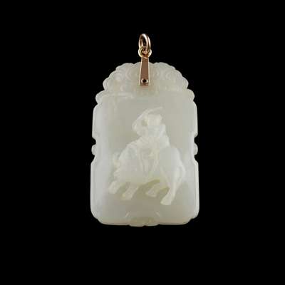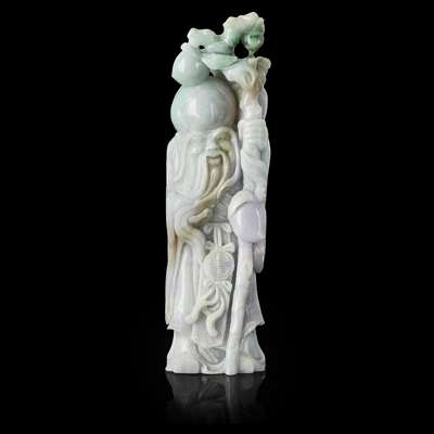 CELADON JADE CARVING OF THE BOY OF WEALTH, SHAN CAI TONG ZI