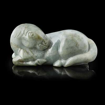 JADEITE FIGURE OF A RECUMBENT HORSE