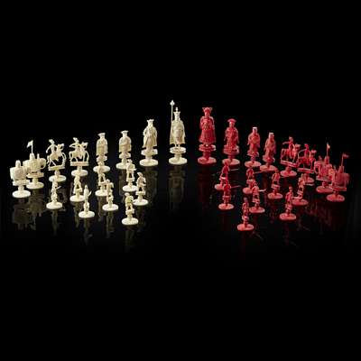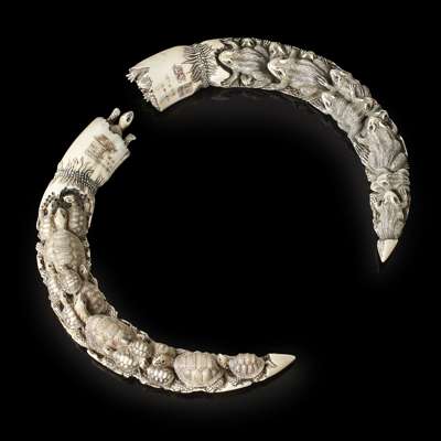 PAIR OF CARVED HIPPOPOTAMUS TEETH FOR THE JAPANESE MARKET