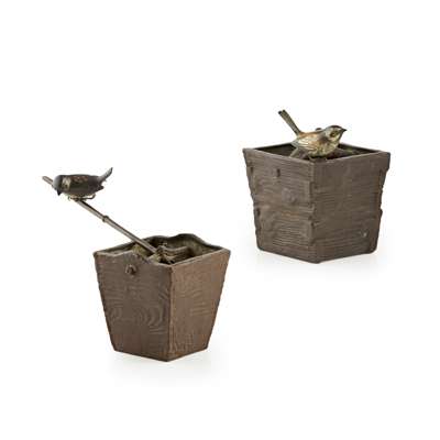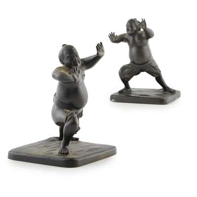 PAIR OF BRONZE FIGURES OF SUMO WRESTLERS, RIKISHI