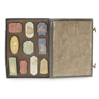 SET OF TEN COLOURED INK STONES DEPICTING EMINENT MONKS