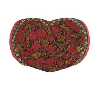 PEACH-FORM 'INSECTS AND FLOWERS' LACQUER BOX AND COVER