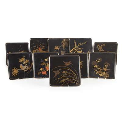 SHIBAYAMA-INLAID LACQUERED 'KANKODORI' BOX AND COVER