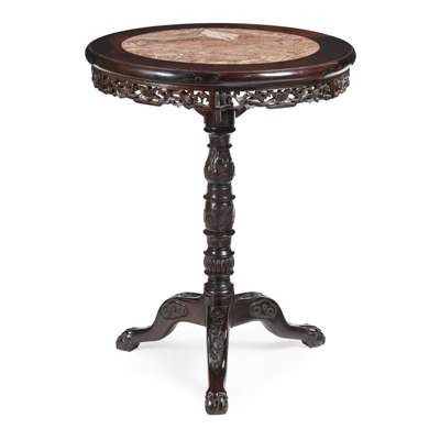 HUALI WOOD AND MARBLE TRIPOD TABLE