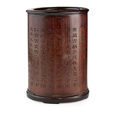 CARVED AND INSCRIBED BAMBOO BRUSHPOT