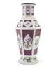 the openwork sides painted with panels of flowers and butterflies against a puce ground