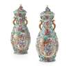 EXPORT TURQUOISE GROUND MANDARIN PALETTE VASES AND COVERS