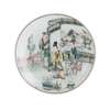 decorated in polychrome enamels with two ladies seated on a fenced garden terrace in front of a paravent painted with a landscape scene, accompanied by an elderly female attendant