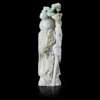the God of Longevity standing, the left hand holding a staff issuing ripe peaches, the right hand stroking his beard, the stone of a pale greyish celadon hue with apple green inclusions