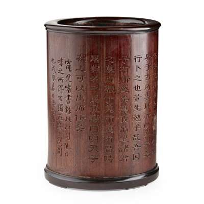 CARVED AND INSCRIBED BAMBOO BRUSHPOT