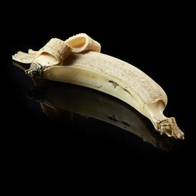 FINE IVORY OKIMONO OF A PEELED BANANA Y