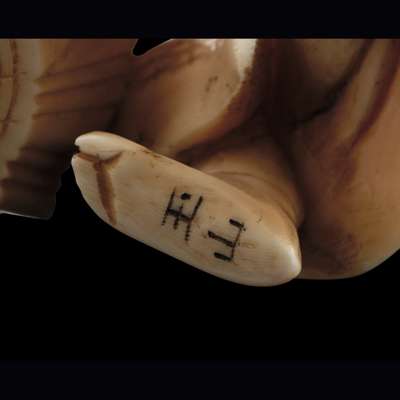 GROUP OF THREE IVORY NETSUKE AND OKIMONO Y