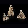 comprising: an okimono of a seated carpenter at work, signed Seizan to the underside of the base; an okimono of a furniture vendor, signed Gyokuzan; a netsuke of a basket maker (3)