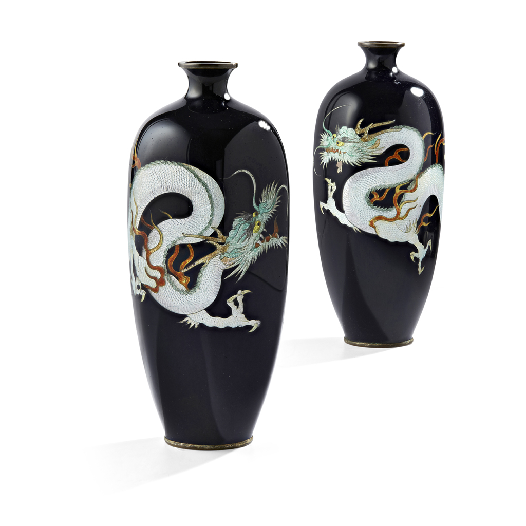 PAIR OF CLOISONNÉ ENAMEL VASES
