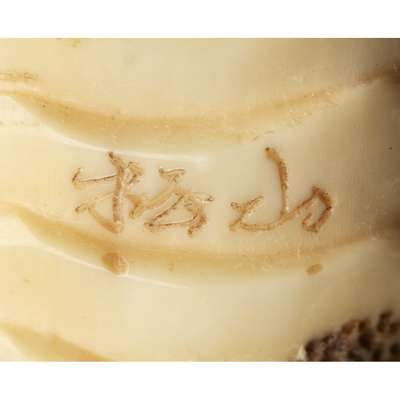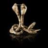 the two cobras shown in fight with bodies entwined and heads facing each other, the tongues sticking out, with finely incised scales, signed to the underside