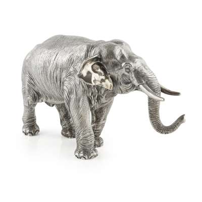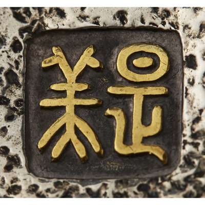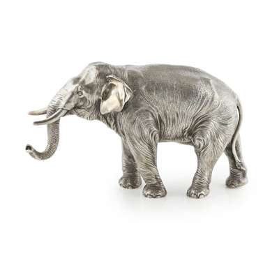 naturalistically modelled in striding pose, the trunk curved downward, the wrinkles of the skin finely detailed, the underside with a square cartouche with gilt seal of Koreyoshi