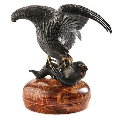 BRONZE OKIMONO OF A FALCON ATTACKING A MONKEY