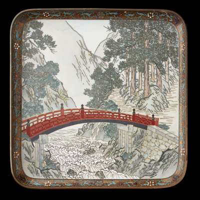 SQUARE CLOISONNÉ ENAMEL 'LANDSCAPE' TRAY