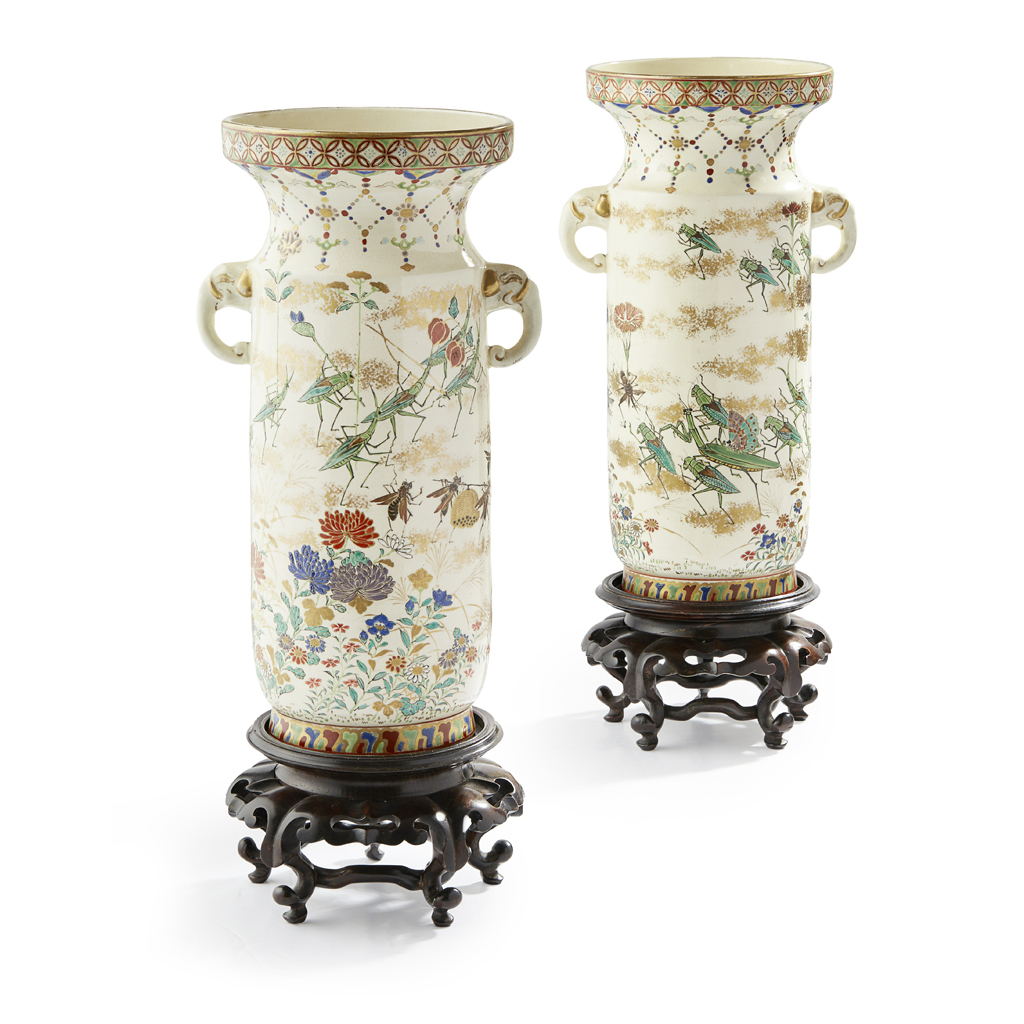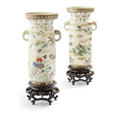 PAIR OF SATSUMA 'INSECTS' VASES