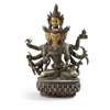 the four-faced bodhisattva seated on a single lotus throne, the eight hands holding various attributes including a dorje, a ghanta, a bow and a needle
