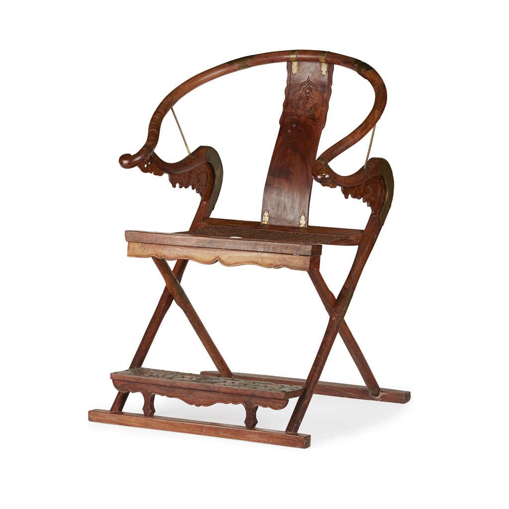 HARDWOOD FOLDING HORSESHOE-BACK ARMCHAIR, JIAO YI
