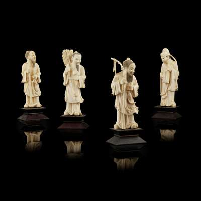 depicting a fisherman, a woodcutter, a farmer and a scholar, mounted on wooden stands (4)