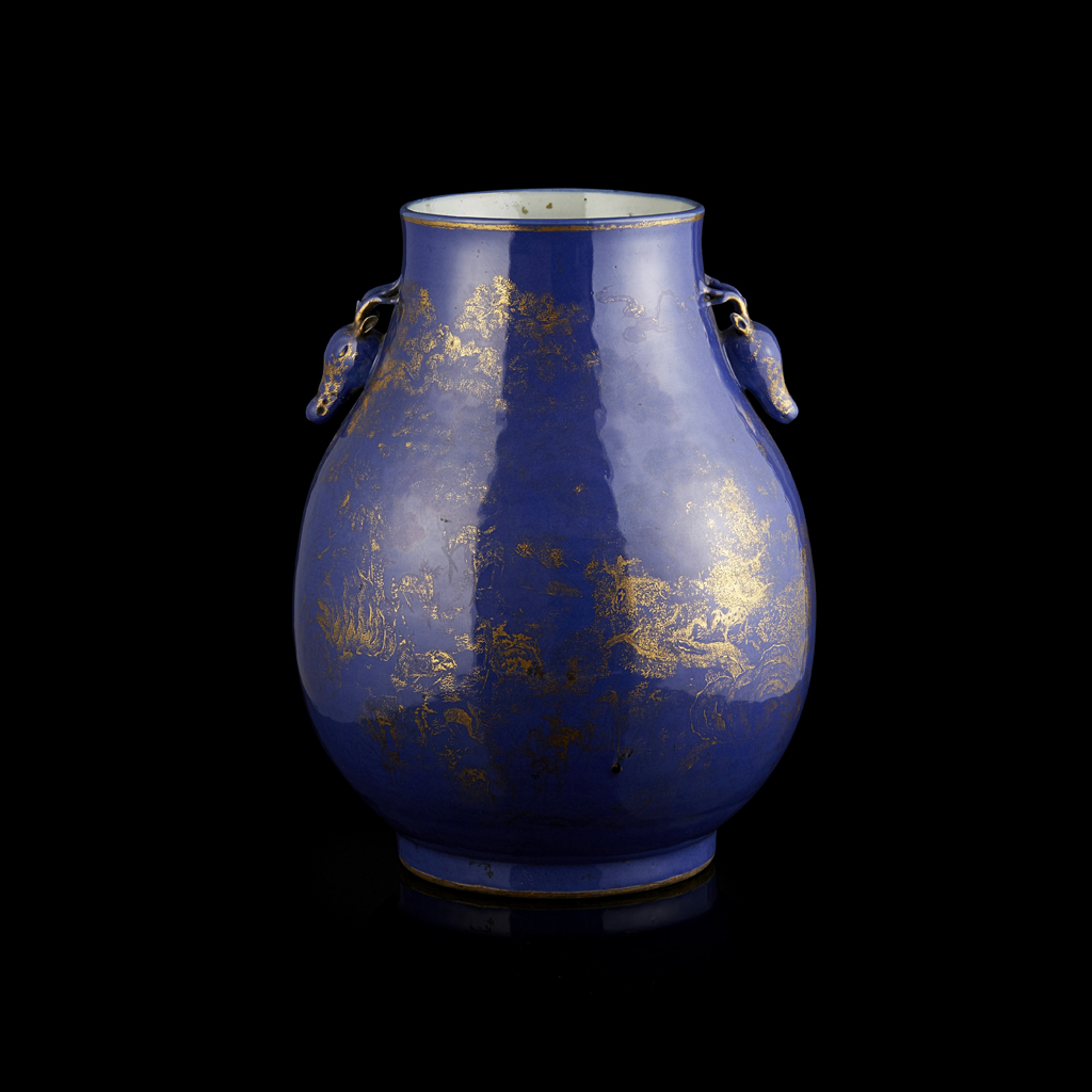 GILT-DECORATED POWDER-BLUE VASE, LU TOU ZUN