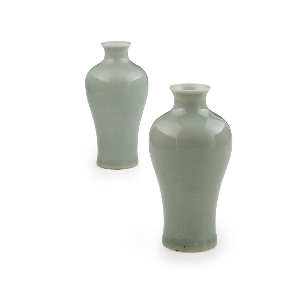 PAIR OF SMALL CELADON GLAZED VASES, MEIPING